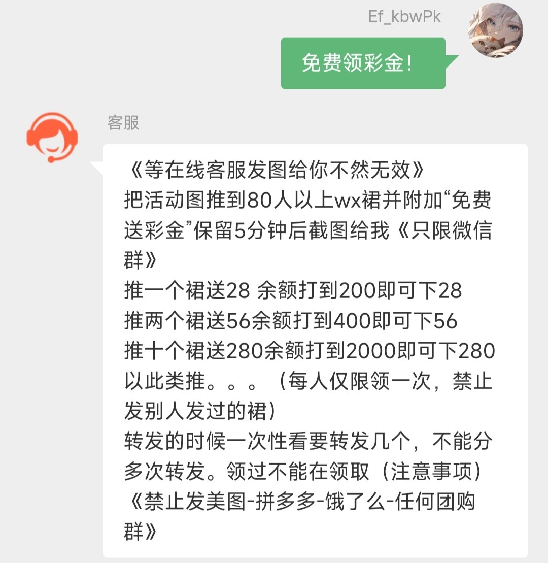 新用户微信扫码!找在线客服要微信客服的二维码添加 微信客服通过了发UID的图给他具体看下面图! 新人送18 发朋友圈送30 发群送28-280具体规则看下方图!