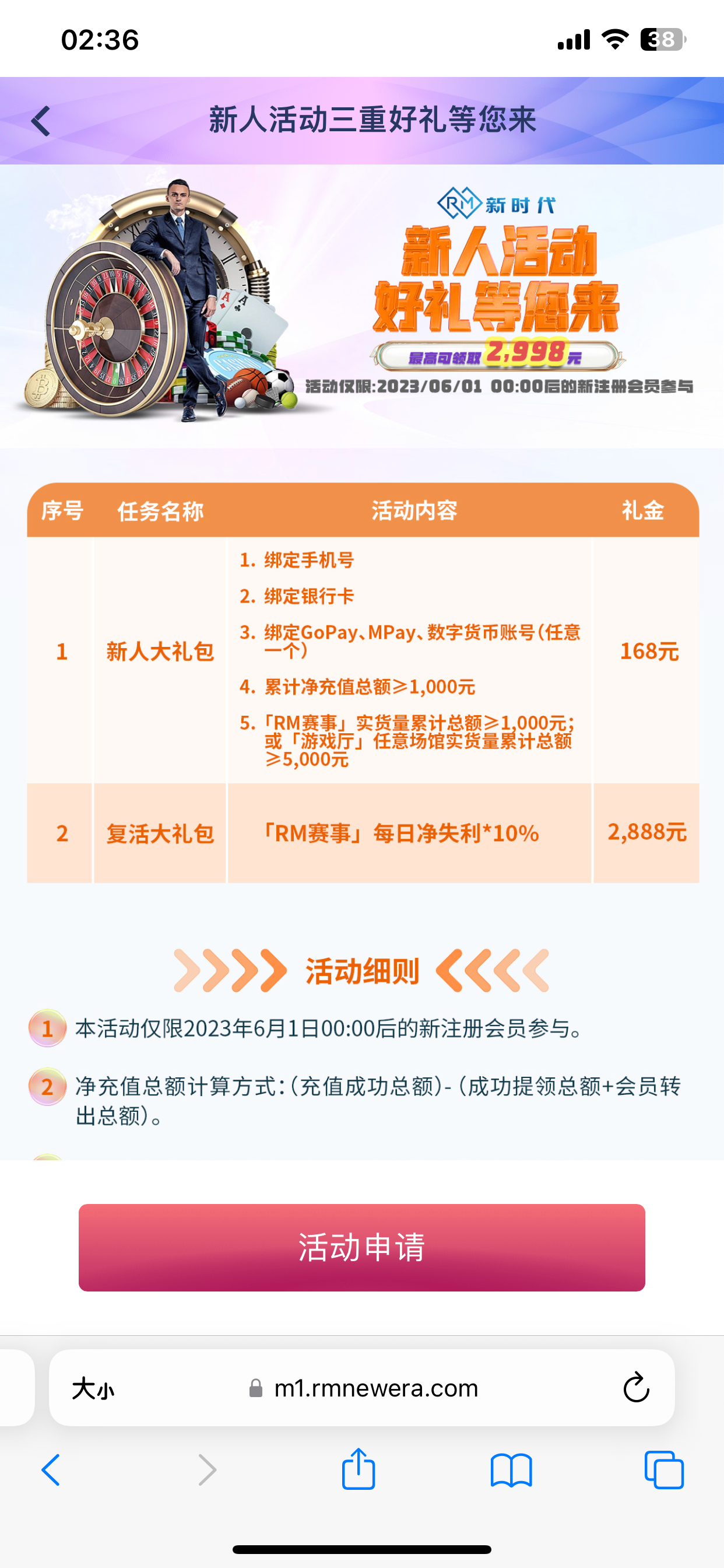 申请要身份证,发了身份证照片让等1-3天,等了两天收到站内信充值低于1000不符合新手礼包。杂种东西这个也发简直丧良心。