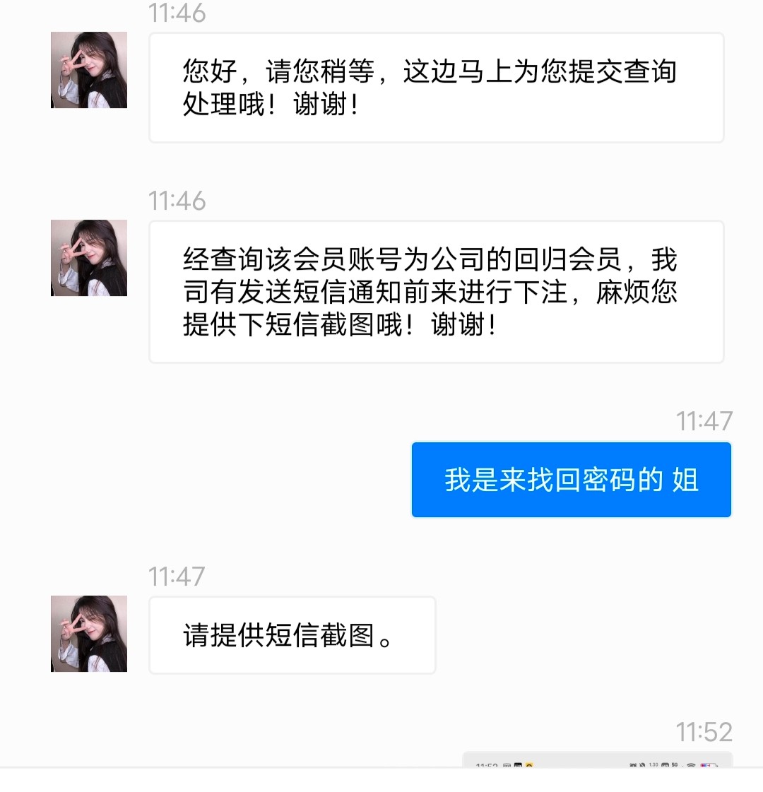 他说我是回归客服,让我看短信,密码在短信上