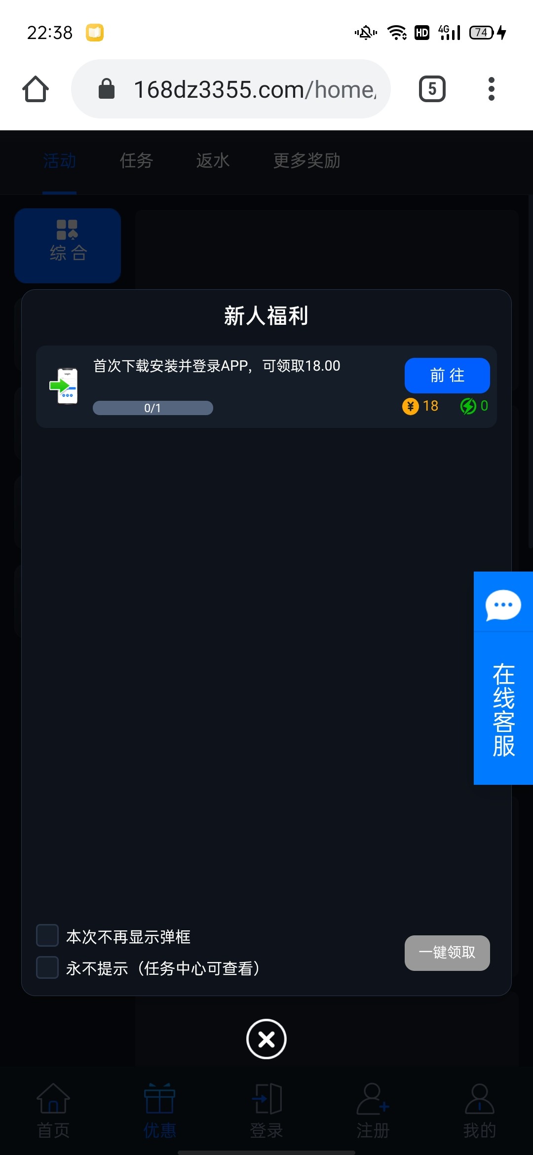 靠打开网页还有送18的提示,下载了app 注册登录后 就变没了。从未见过这么垃圾的台子 骗注册下载的
