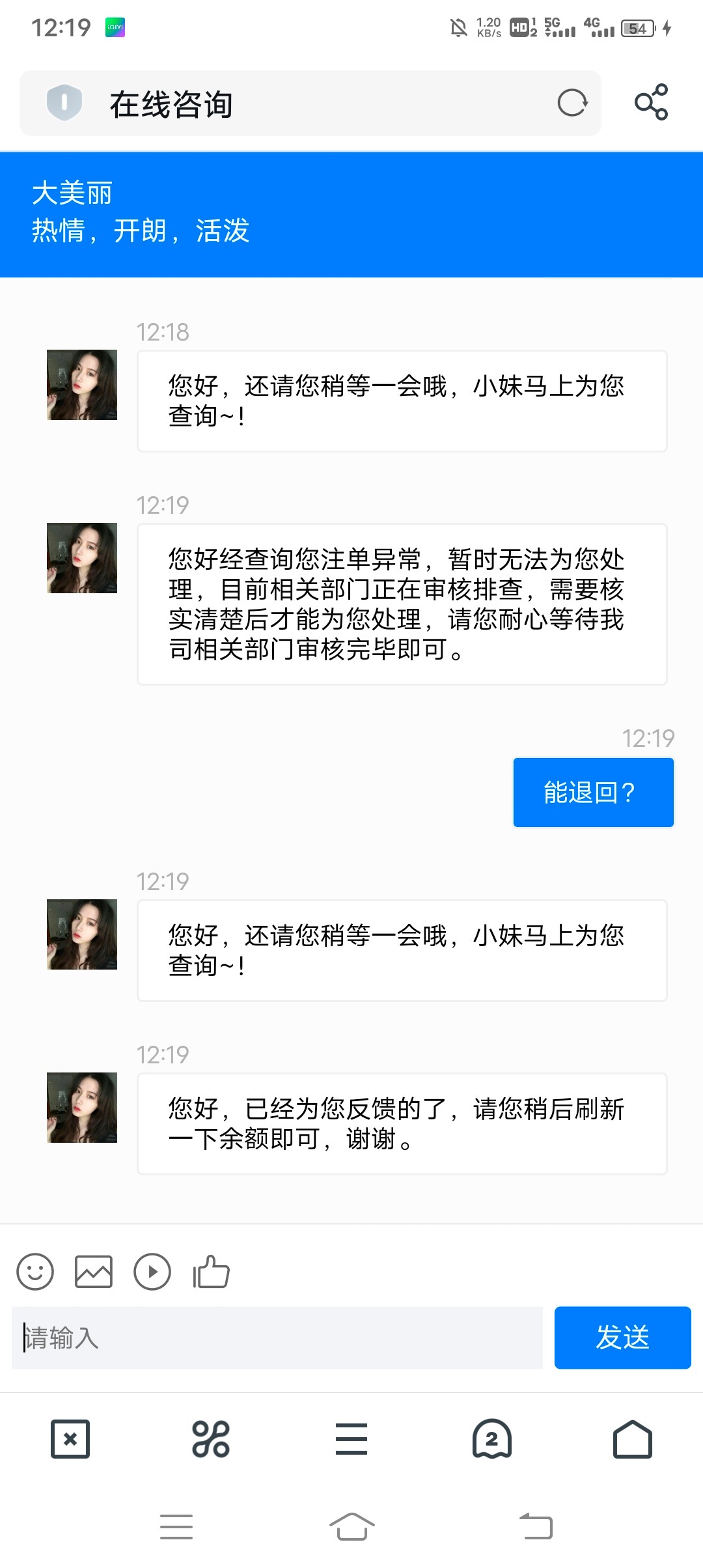 zjh330086 ▶ zjh330086 到啥到 没到客服时人机每次恢复就一句话 提交处理了正在排队14个小时了不可能到了的 2023-12-12