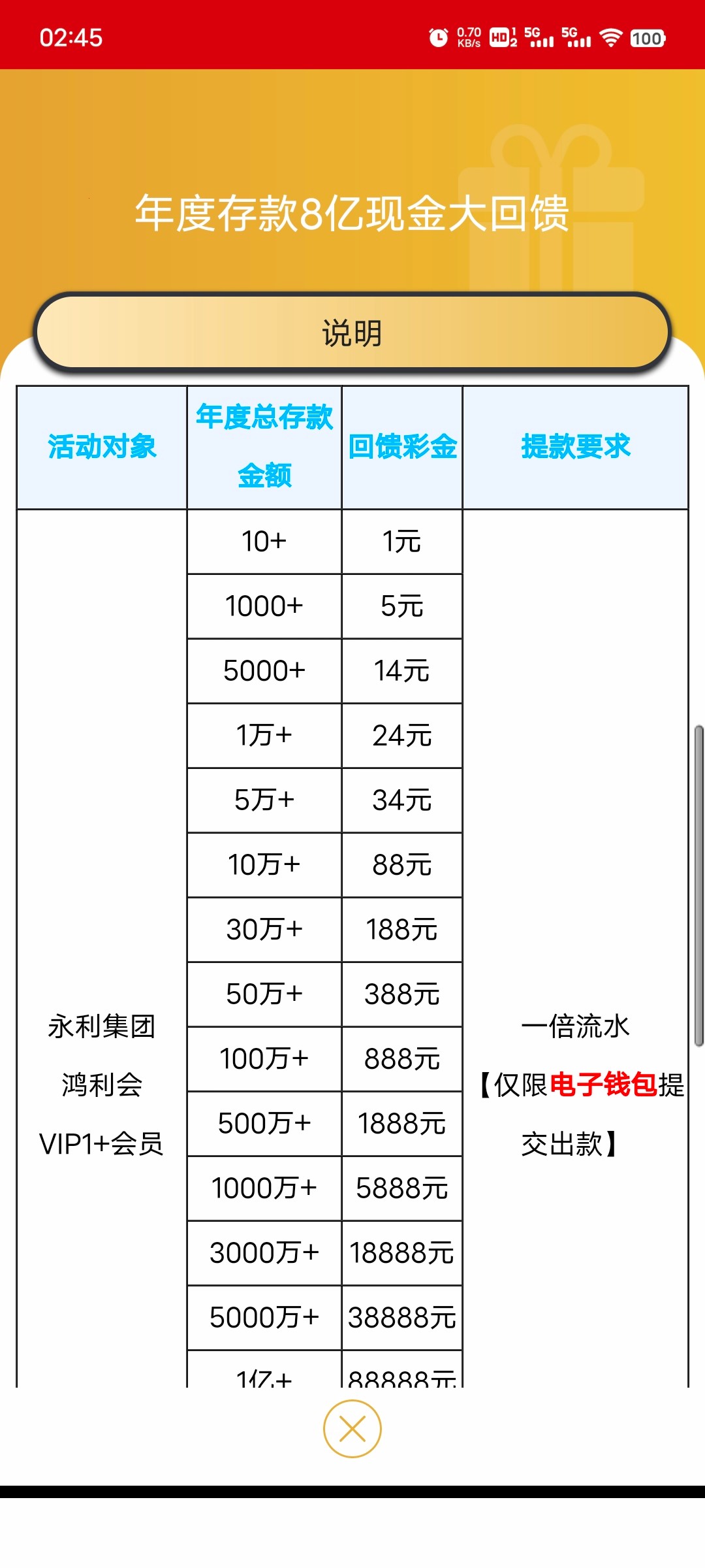 2023一整年有存款的v1+账号可以领,新注册的不能参加这个回馈