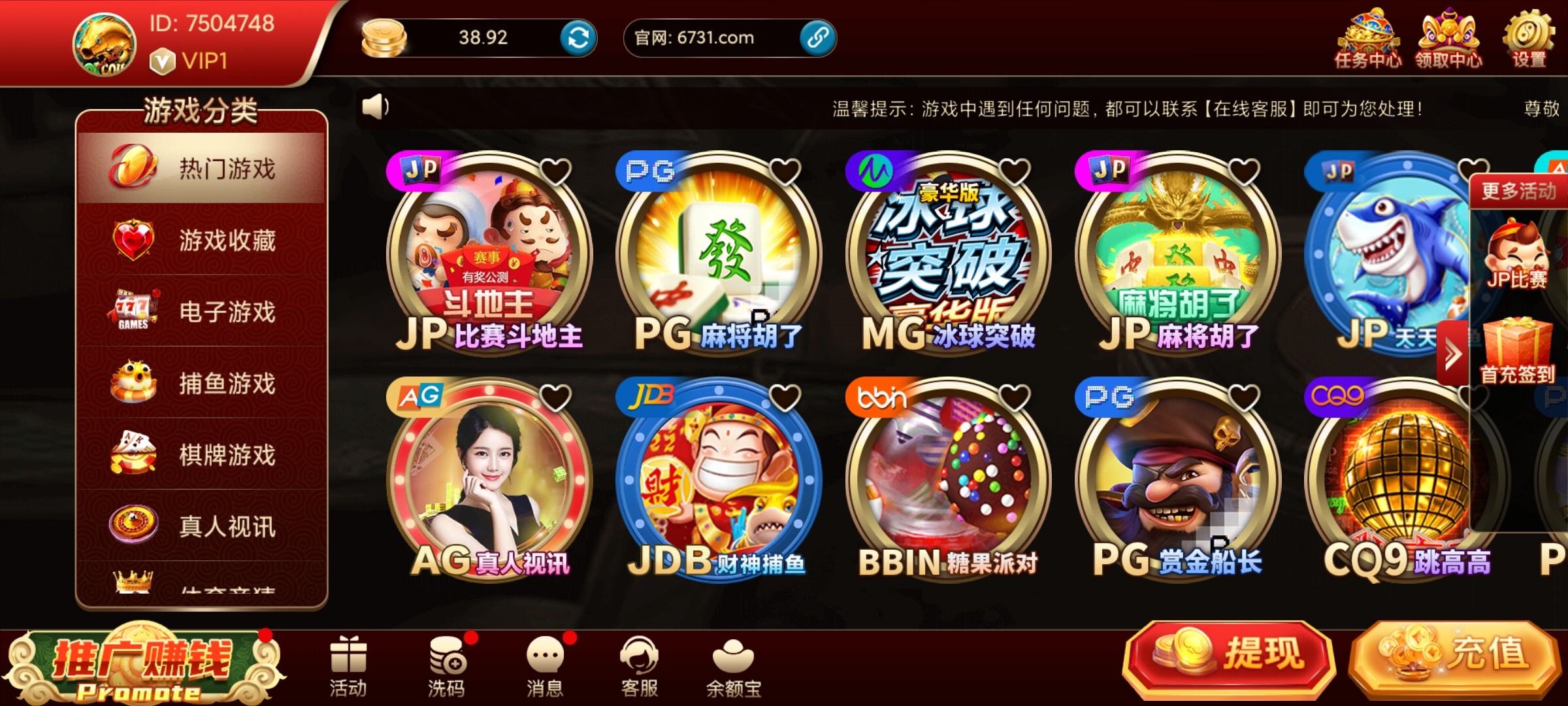 注册直接送38,还没提现不知道到不到账(严禁充值)