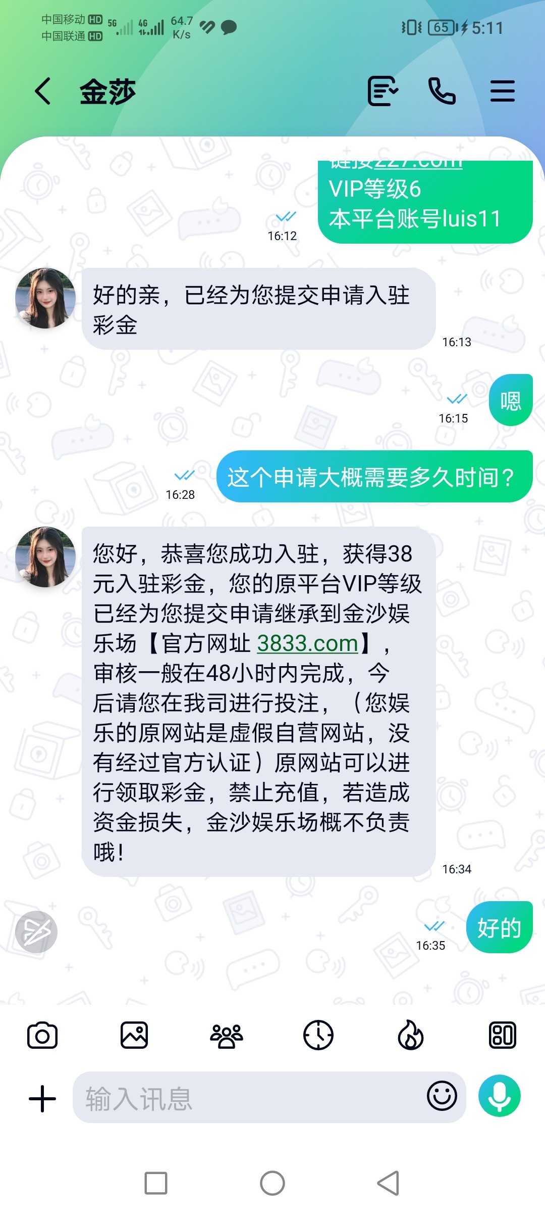 申请彩金这客服不爱回消息,多催促他