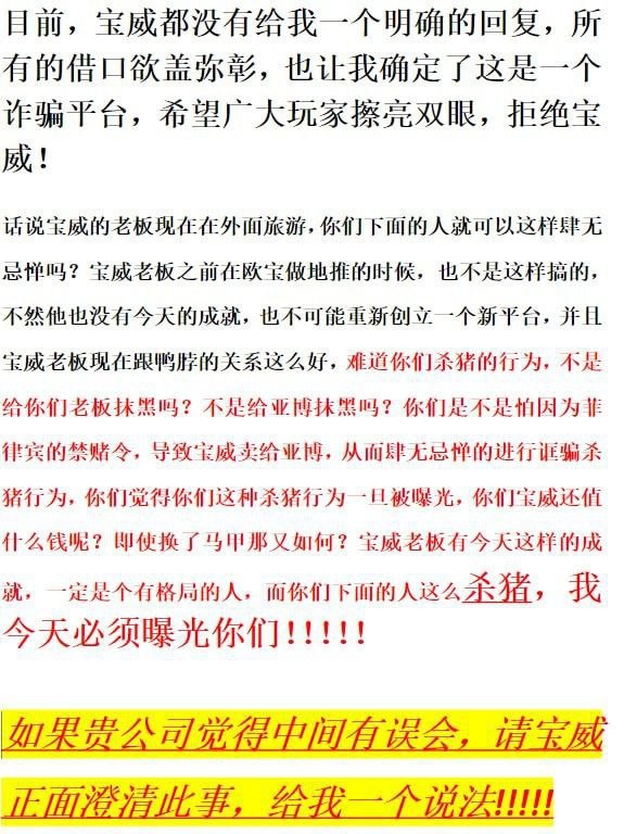 建立在信任宝威平台的前提下,我加大了投注量,但从7月份开始,平台开始找各种理由借口拖延提款的时间,但好在名为波导的高管,都会在第一时间及时处理这些问题,并且得到了有效的解决,导致我越来越信任他,且进行了大金额充值,从而慢慢的掉入宝威精心谋划的陷阱....