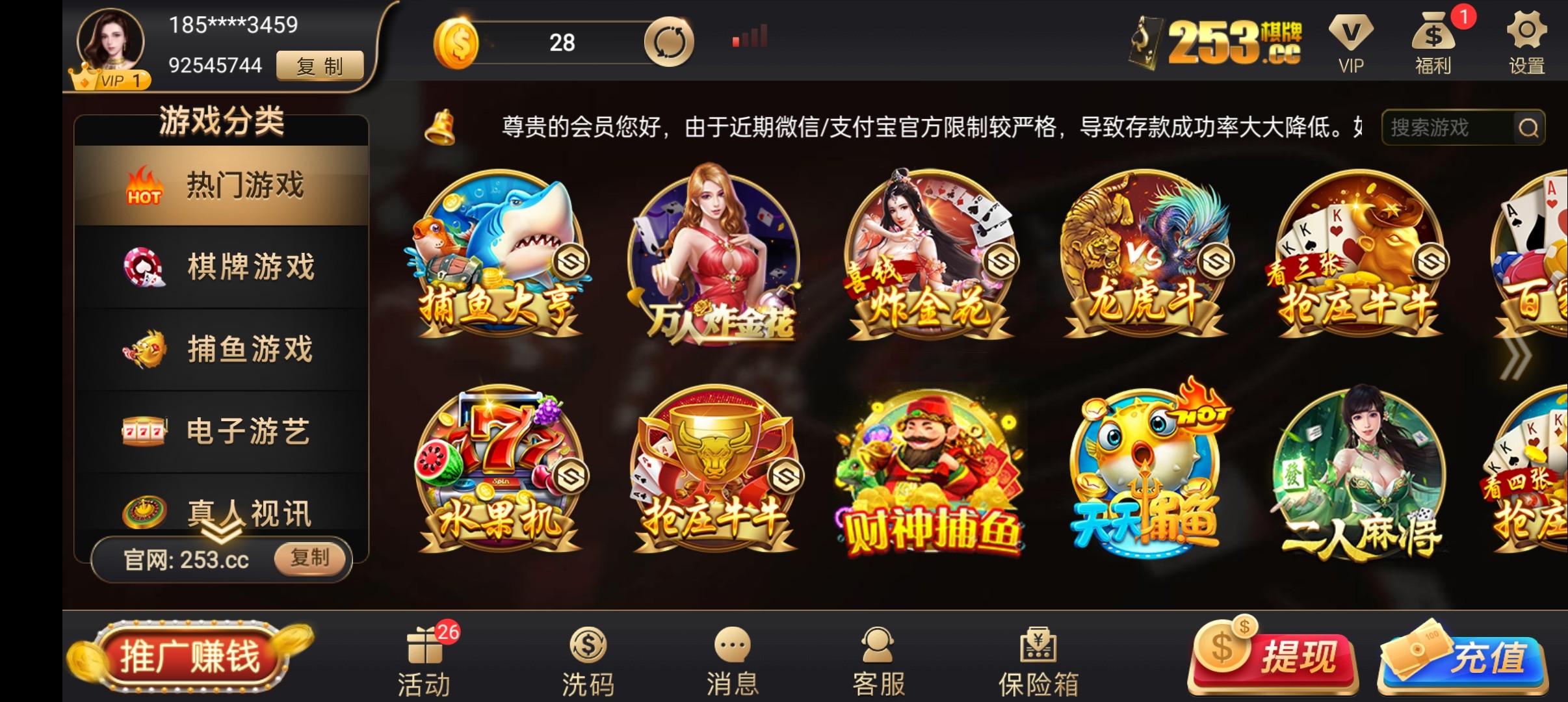 【253棋牌】––送28