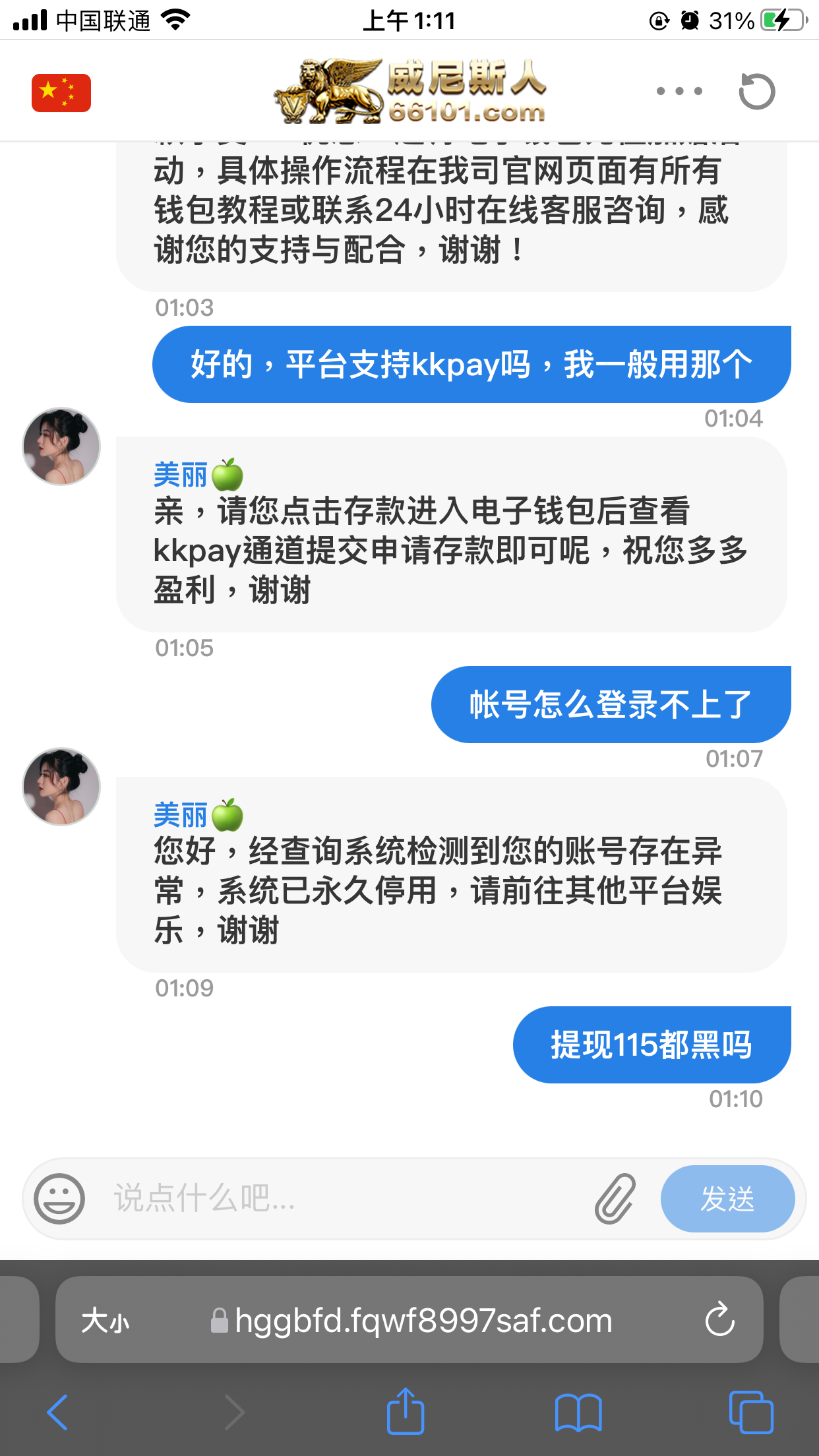 我的136也黑了,以前送过188取款200到了,电话邀请回馈28 每天签到8.8好像是30天,第三天赢到136取款注单异常说不欢迎。