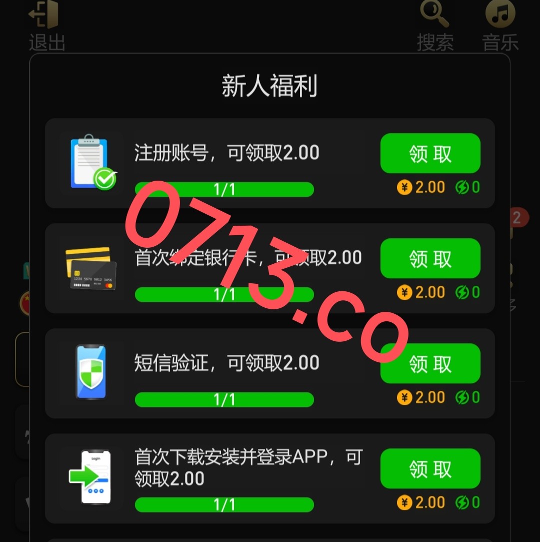 新用户注册完成任务 自助领取8元彩金 无游戏限制 最低提款100元