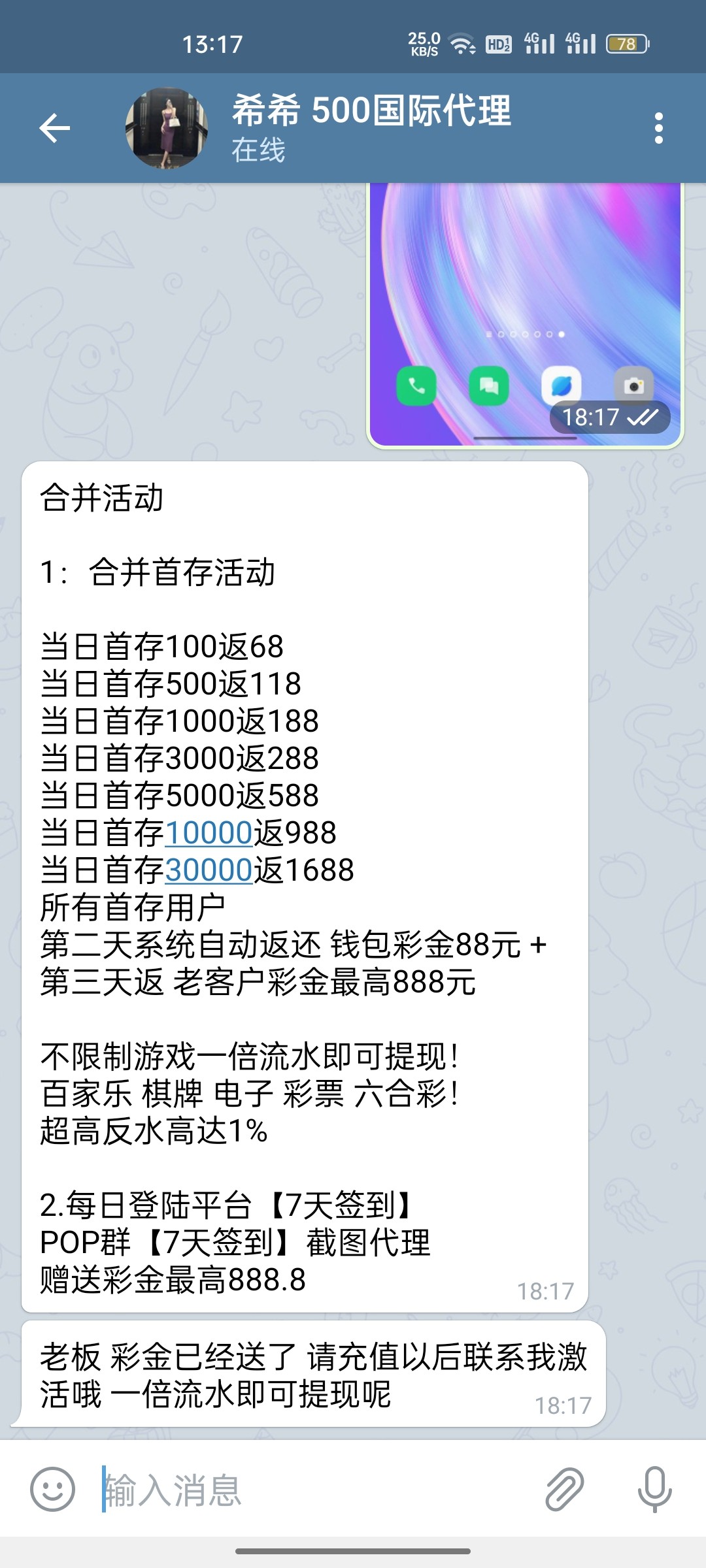 黑台子别搞,说他黑台直接拉黑,之前打电话给我的说送免费彩金 送了12出一百要提现多少充多少,pop群里全是托