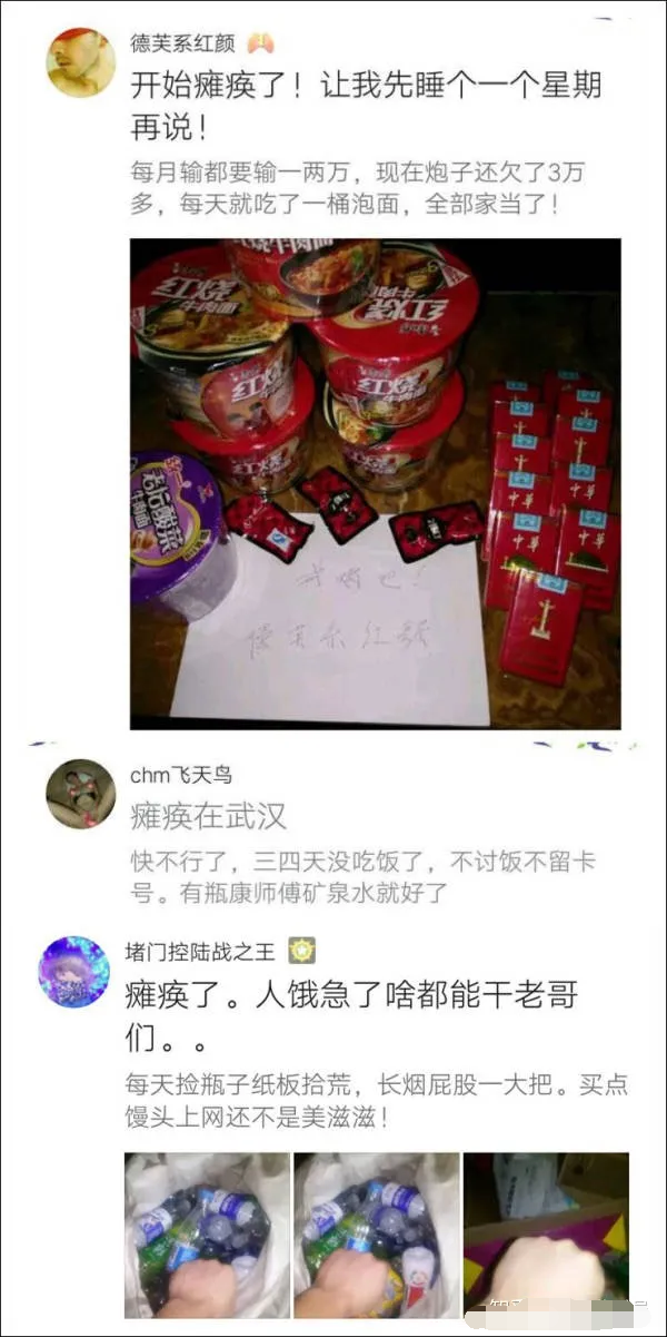 今天借此黑黑论坛写下自己经历,希望早日上岸。第一次写自己故事。信用卡全部撸光了。这两天 网贷已经逾期。催收打电话过来态度还挺好的 只要我快点想办法还了还了马上又能借出来。可是我现在就是,1000多没办法想了,昨天撸了一天的小贷 没一个通过的,开口问我姐姐借1000块钱 被骂了一顿。心里真的压抑 ,这几天把最后一点钱都输完了。网赌 手机麻将 这一两年输了几十万了。撸无可撸 现在一样没上班。这两天是把自己逼到绝境了。真的是作死,好好的日子不过要把钱送去输了。也许这一天早点来是好的。 不上班天天玩迟早会玩死去。这两天哭了好几次,真的很心痛,对自己这样子很失望, 也是要脸的人,怎么就沦落至此了。 其实只要不赌博,我每个月还是有几千将近万把的收入,打麻将还经常有输有赢,可是在网上充的钱真的是送人了,偶尔赢一回保证放不了两天又输进去更多。恨自己明知如此,一上了头就又管不住自己了。其实就算有一次出现奇迹赢了又能怎样了,还是会送进去更多。我玩的是最坑的老虎机哎,混成这样真是可怜又可笑。 没有网赌之前只是打打麻将什么的,网赌之后就开始入不敷出,开始欠钱了,才两年时间吧,输的我经常想死。这两年家里都给了不少。我现在怀疑自己是否还有救。人生原本不该如此啊。赌赌赌你可想过你的父母!捞捞捞你可想过儿女书包!我曾经也是一名赌徒。也给自己家庭和父母带来了一些负面影响。都不知道什么时候才能上岸。