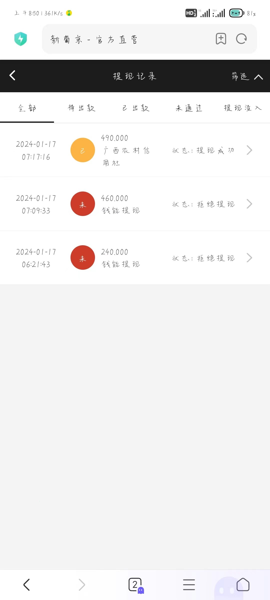 出款情况:未知(严禁充值