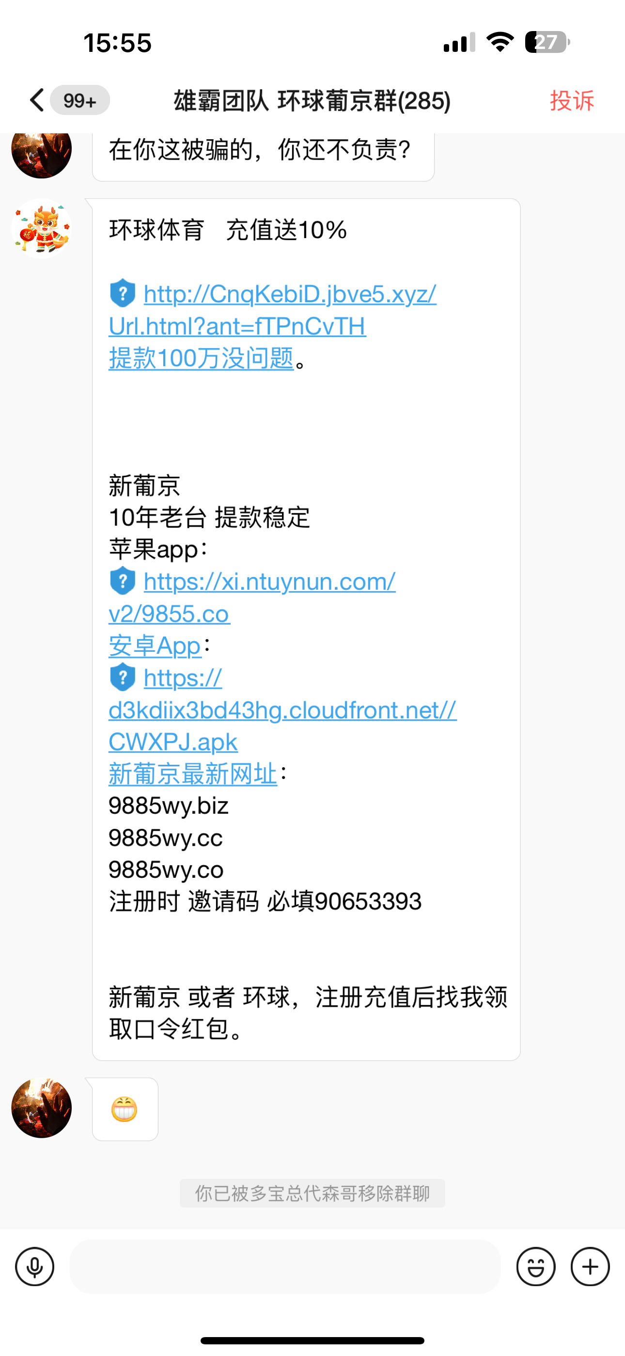 大家注意了在泡泡的老哥们注意了之前是推多好体育的黑了好多人的款项不给处理现在开始推环球新葡京死嘛杂种大家注意⚠️