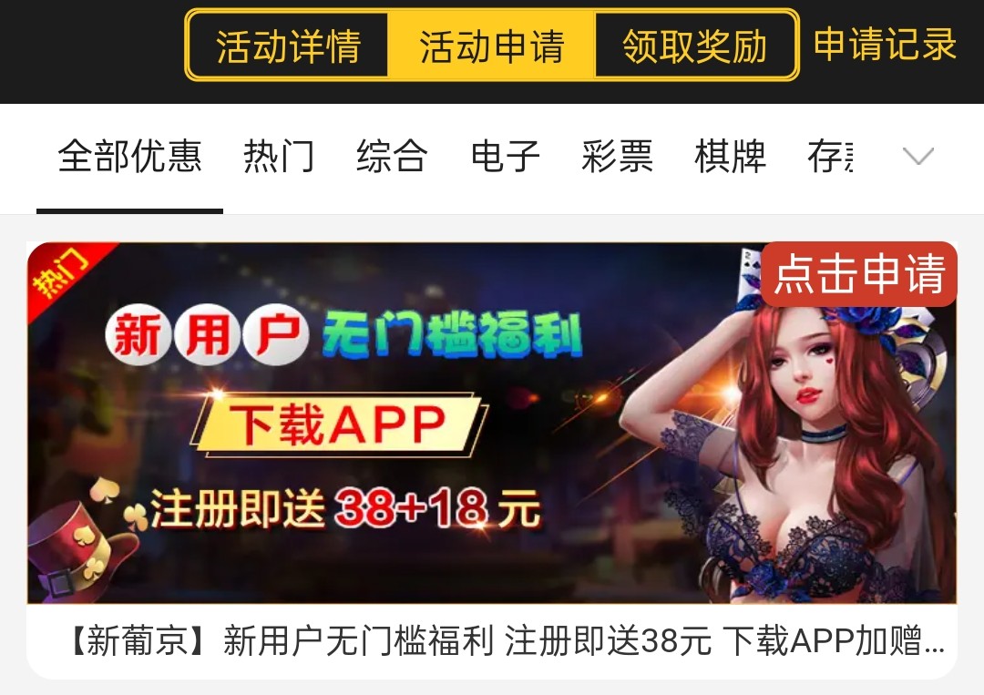 跟773一样自己开个小号在你下面领取就好了,特邀送50,新用户注册送38/18,具体自行查看优惠!
