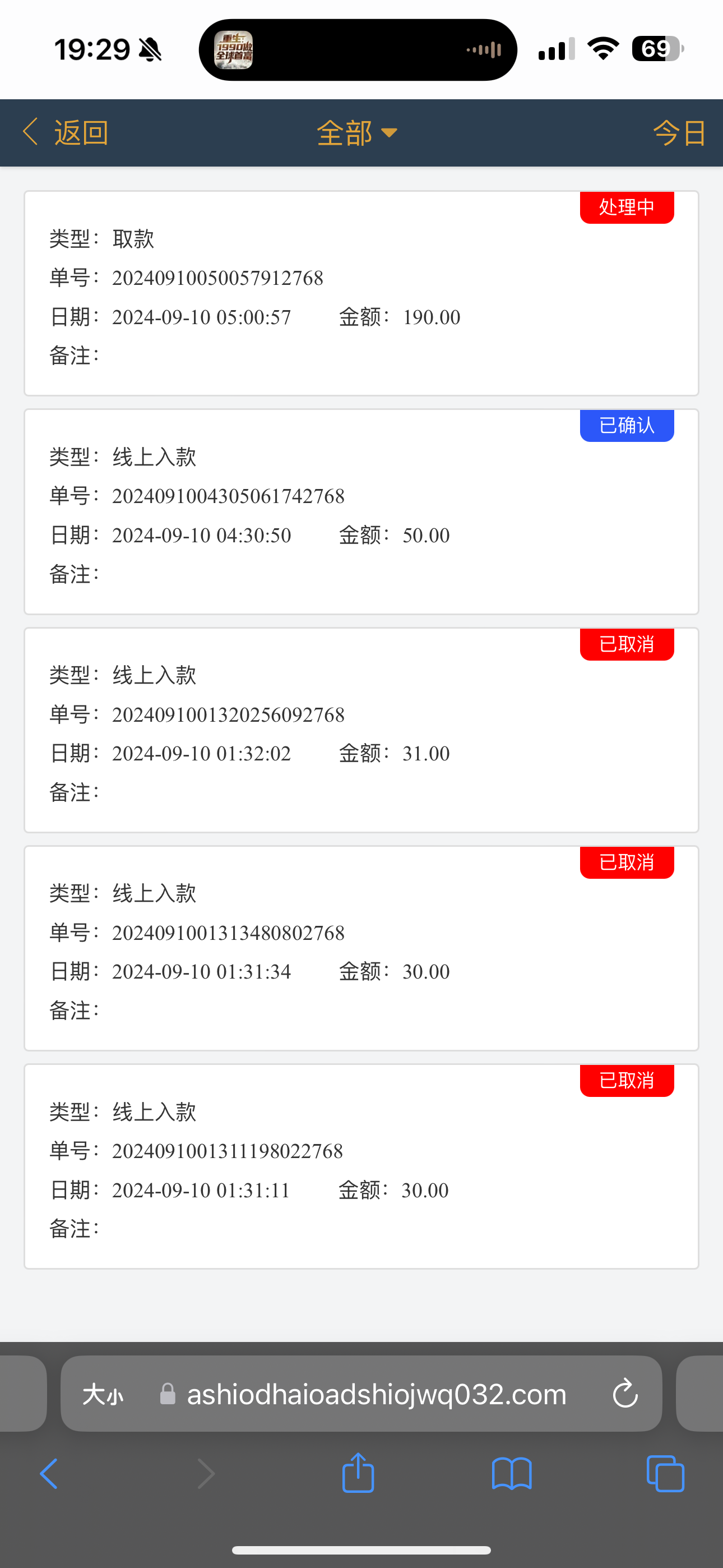 充50玩玩结果提了190一直显示处理中,一直给我打款190打了四笔