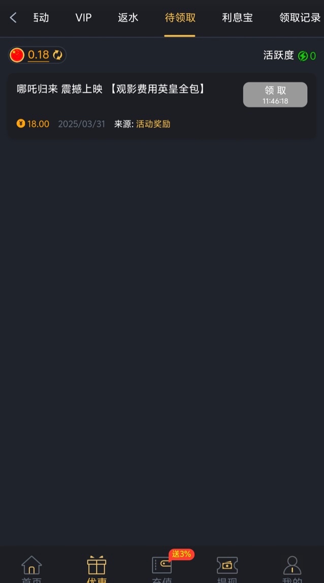 V2用户以上回馈18彩金,是的兄弟上号领