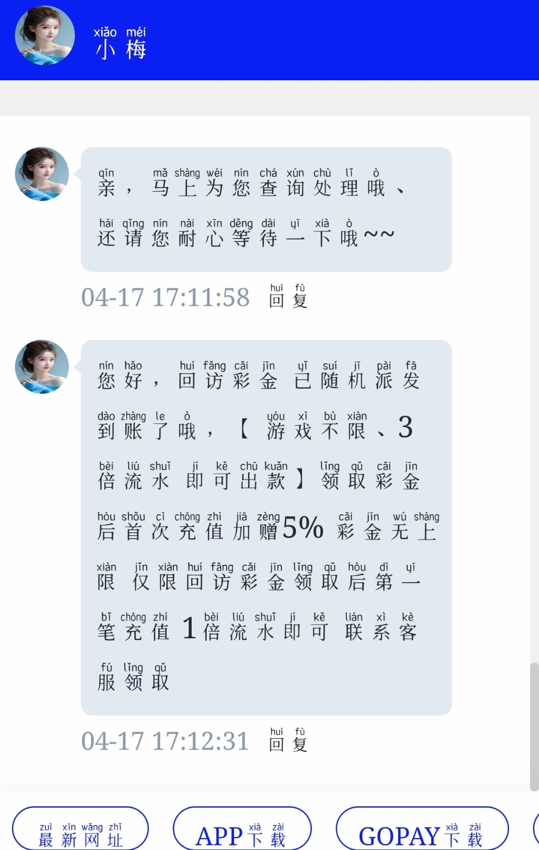 新用户联系客服申请电话彩金,老用户申请回访彩金,查号码,在名单内的送