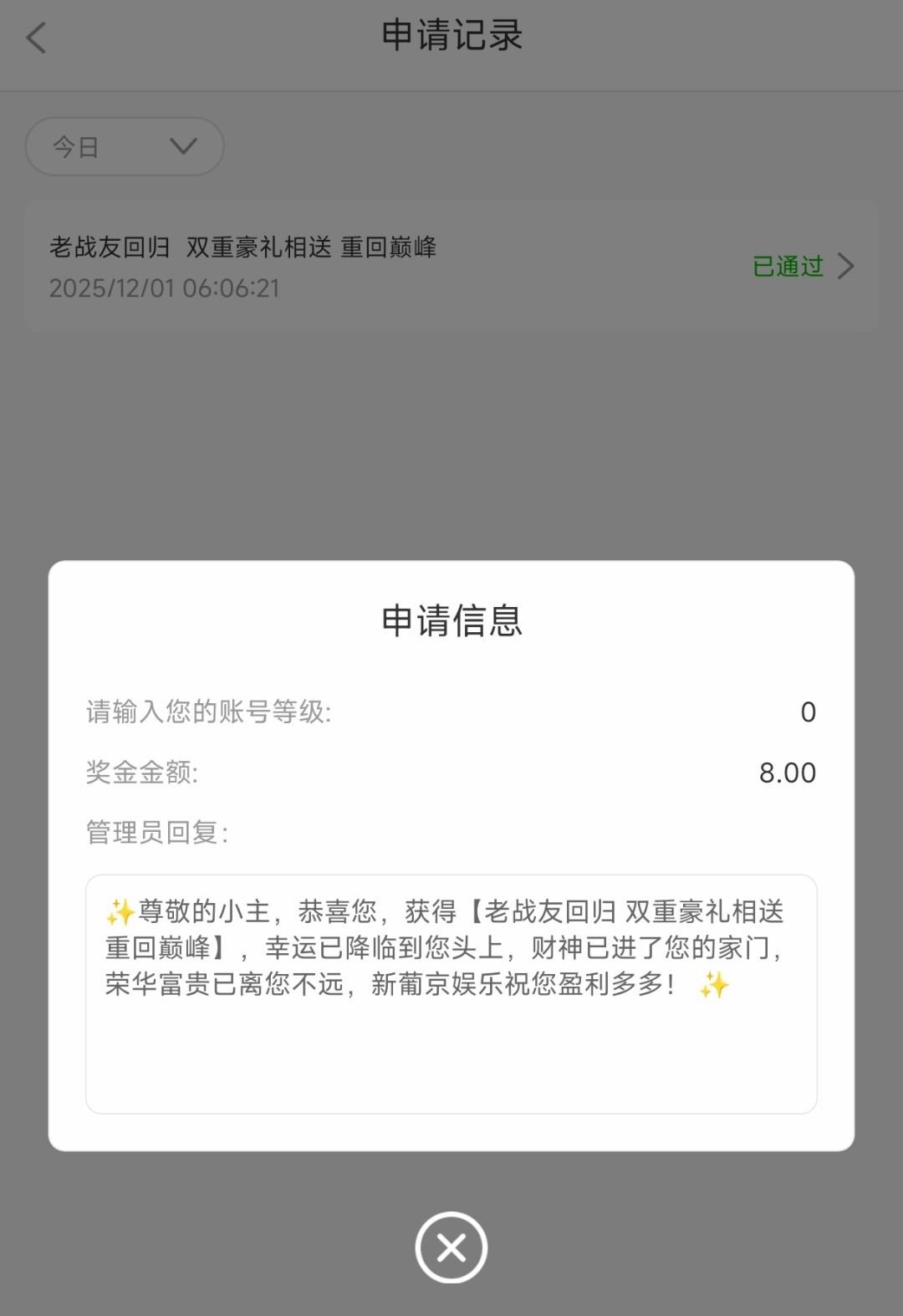 近期30天内未登入投注过并历史充值过3次以上累计存款100以上才能领取,符合的兄弟可以去看看