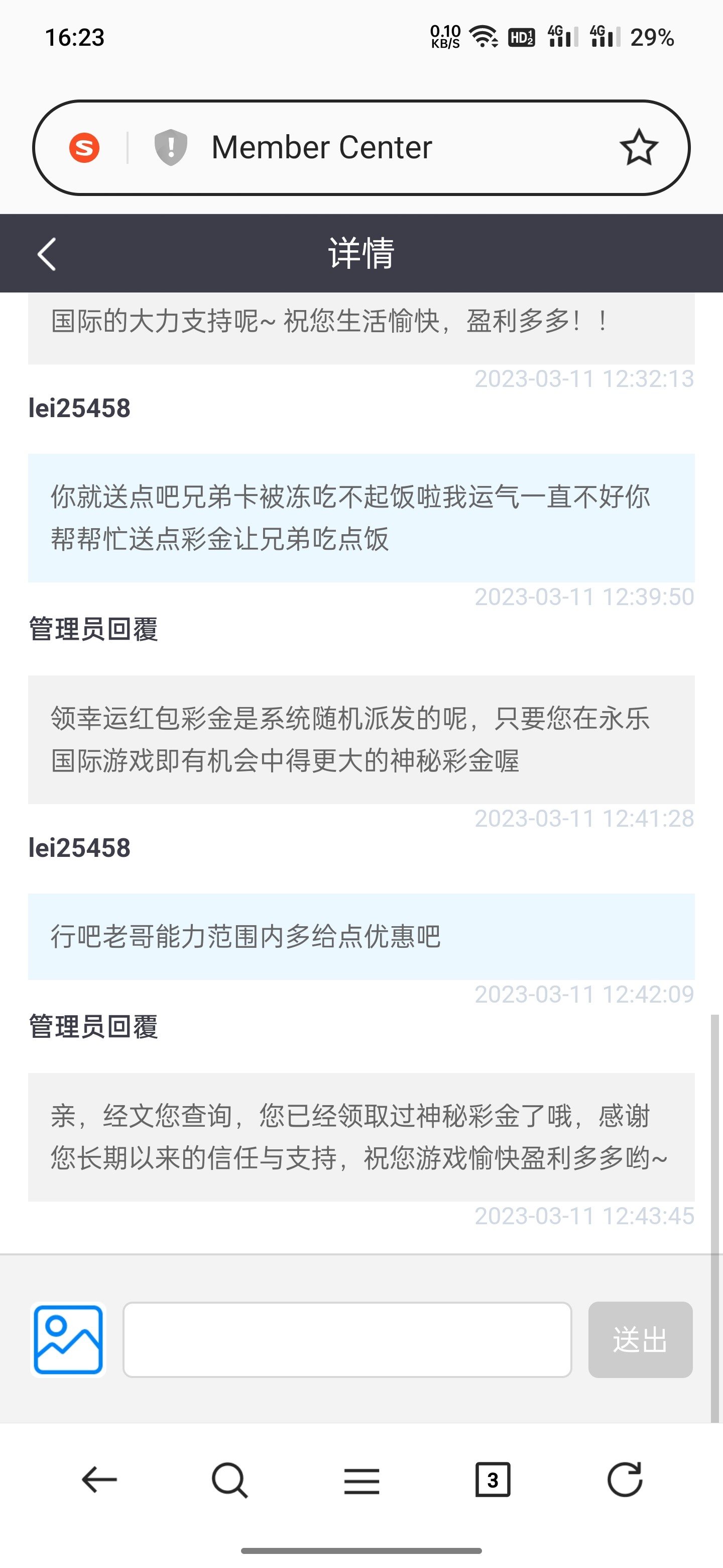 你们可以去意见回馈里面哭穷就说输多了让送点彩金,反正是会说话会送你们一份彩金18或者28
