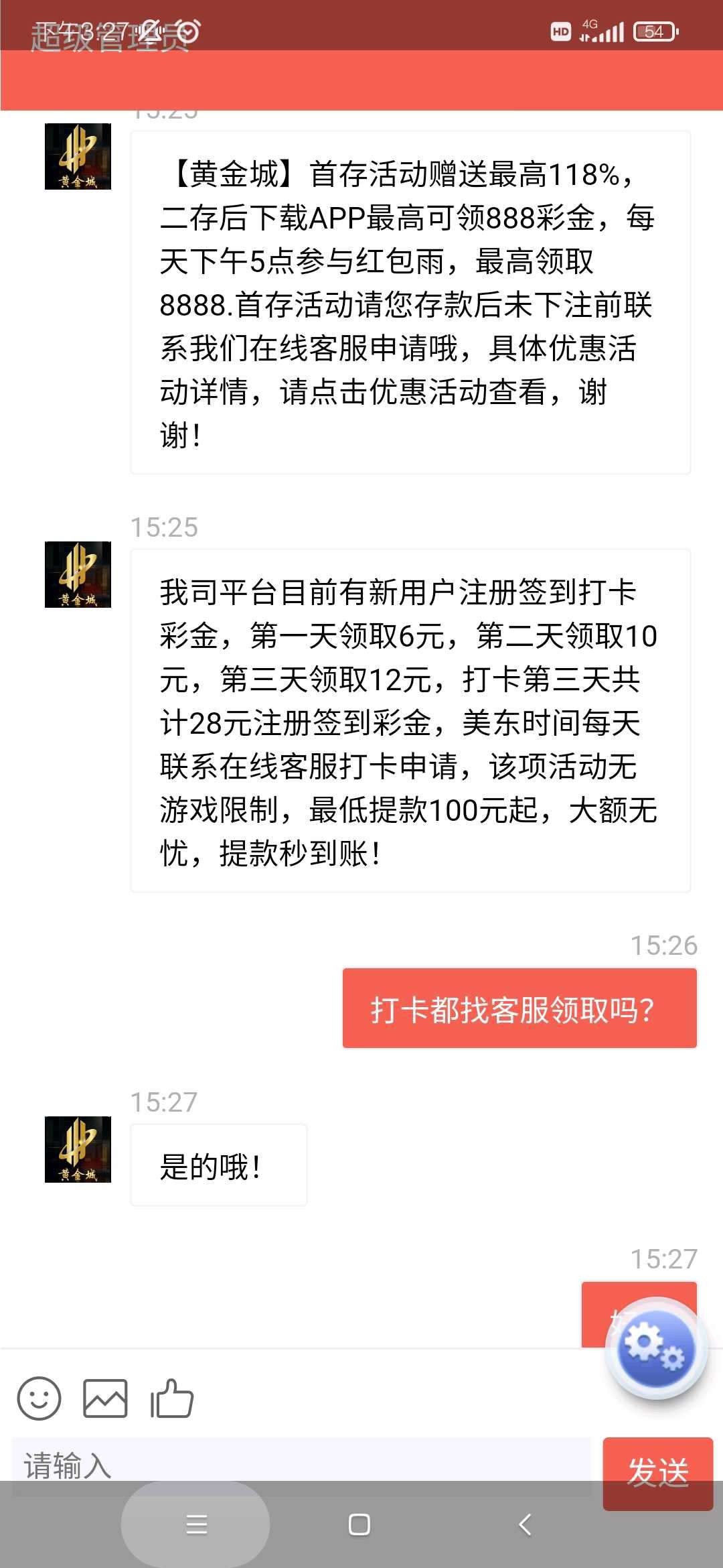 签到领的彩金,最低100提,
