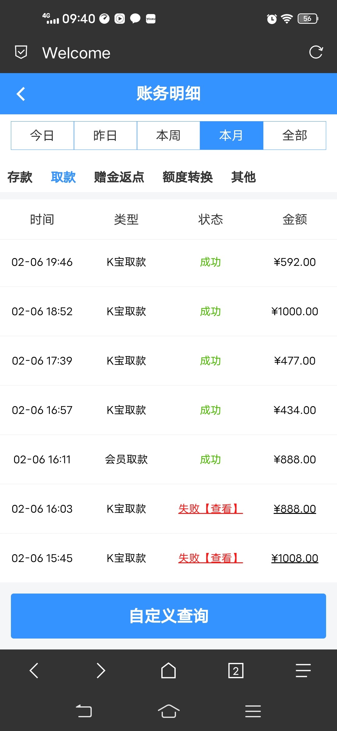 188下款260,到账