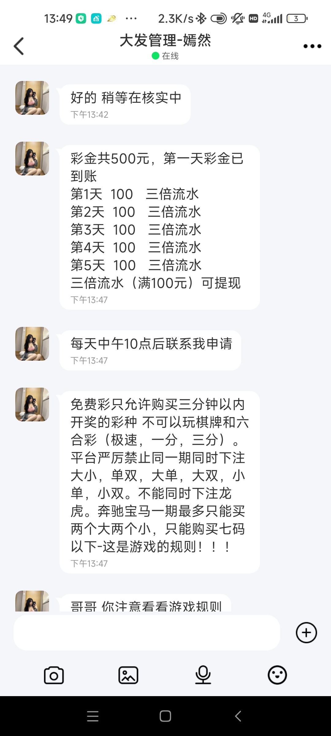 刚来电话送了100后面4天每天送100不用冲钱
