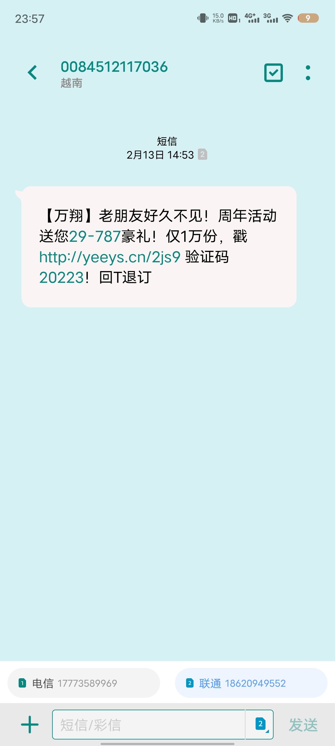 【万翔】老朋友好久不见!周年活动送您29-787豪礼!仅1万份,戳 http://yeeys.cn/2js9 验证码20223!回T退订